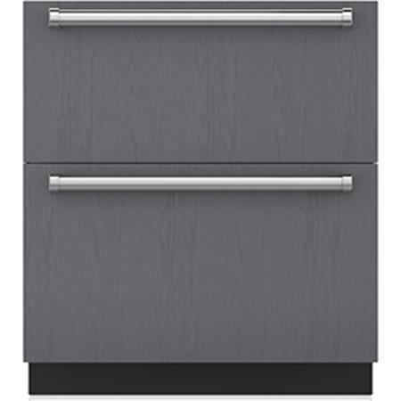This model holds 5.2 cubic feet of food in two storage drawers with removable dividers. Standout features include a sliding crisper cover and an air-purification system based on NASA technology. This system scrubs the air of ethylene gas as well as mold, viruses and bacteria every 20 minutes. The customizable drawer fronts can be fitted with panels and handles that blend in with literally any room's decor - making this a practical, beautiful option in a kitchen, master suite, bar or home theater space. As with all two-drawer models in the Integrated line, this model comes with interior LED lighting and stands 34.5" tall to fit below standard countertops. Dampened drawer slides result in a smooth, high-end cabinetry feel. Image is shown with panel kit, sold separately.
